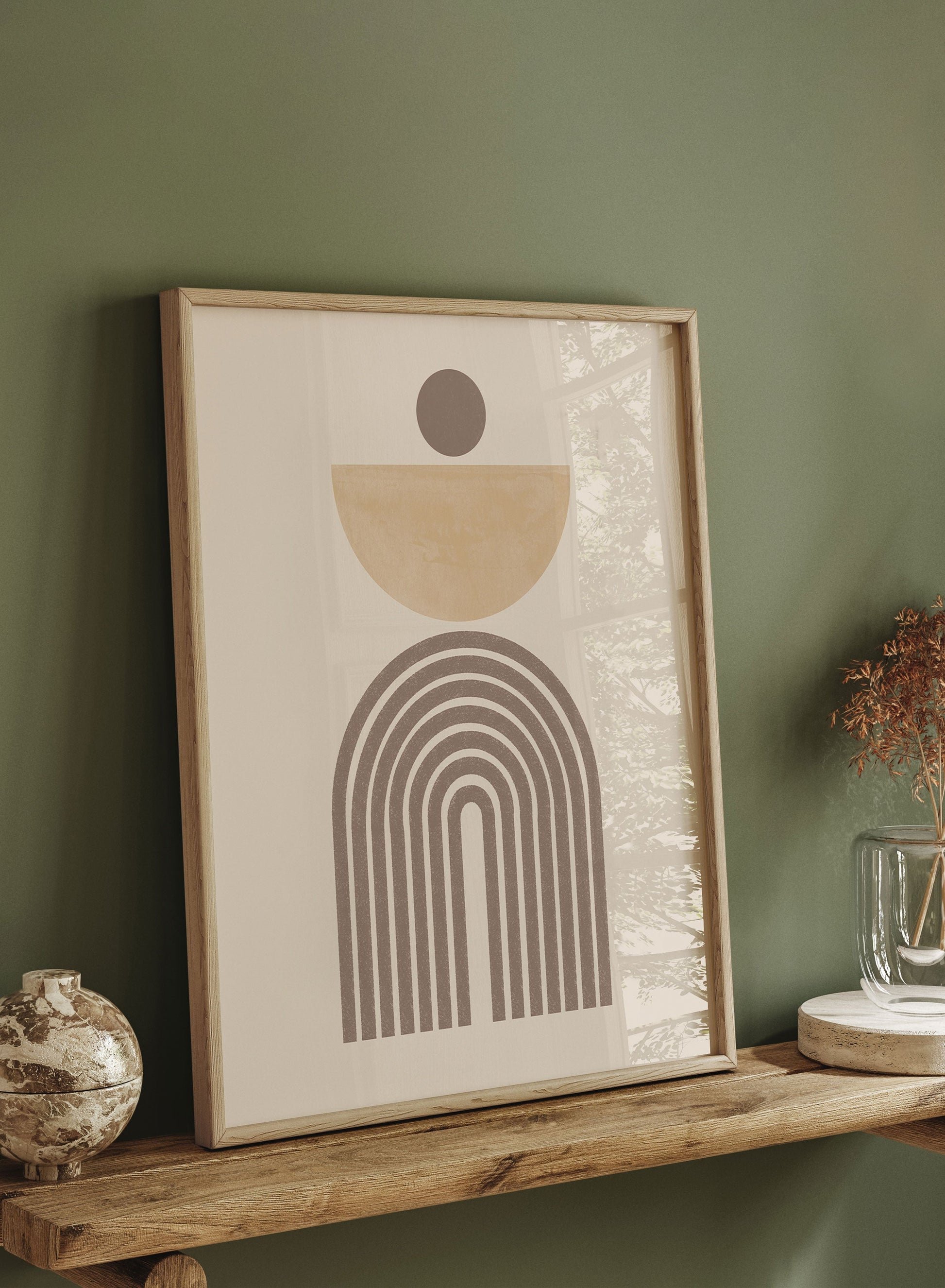 Add more zen to your life with this chic art print. The ‘Centered’ poster features a gorgeous brown striped arch topped with a beige half-circle and a perfectly balanced brown circle. This print’s modern composition will look stunning in contemporary homes as well as more eclectic and bohemian spaces.