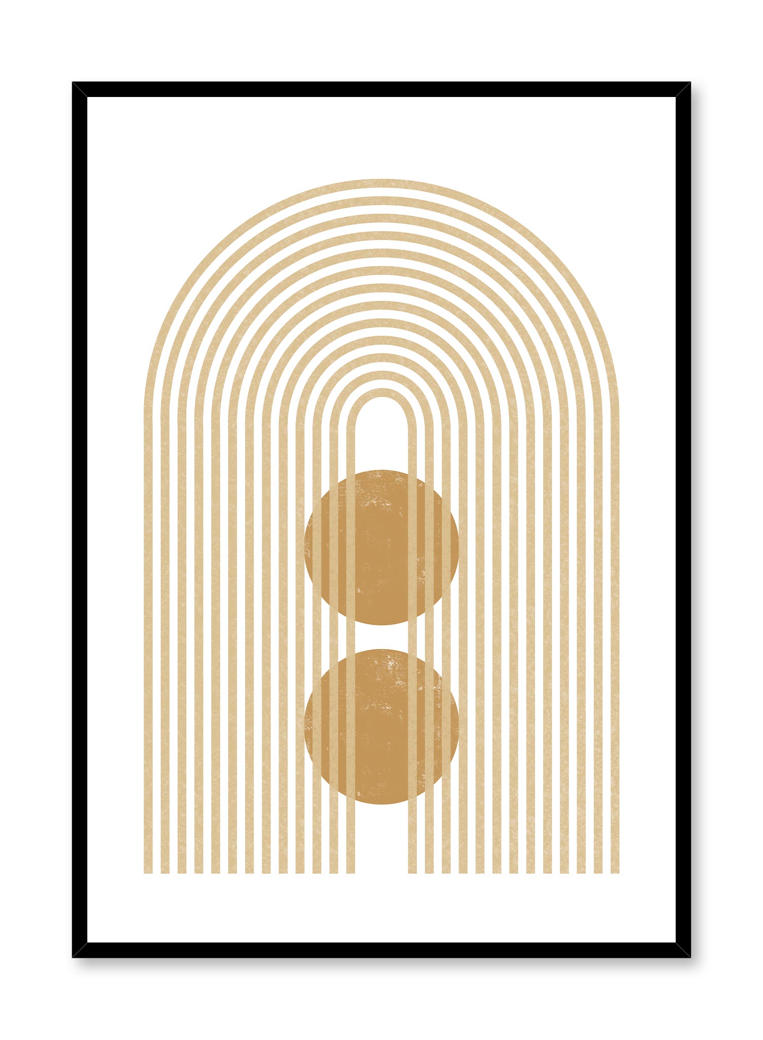 Are we being hypnotized or simply obsessed with this cool geometric design? The ‘Mesmerizing Archway’ poster proves that statement pieces can be simple. We love this print’s striped arch and the mustard-yellow circle accents. A crisp white background lets this poster’s minimalist composition shine.