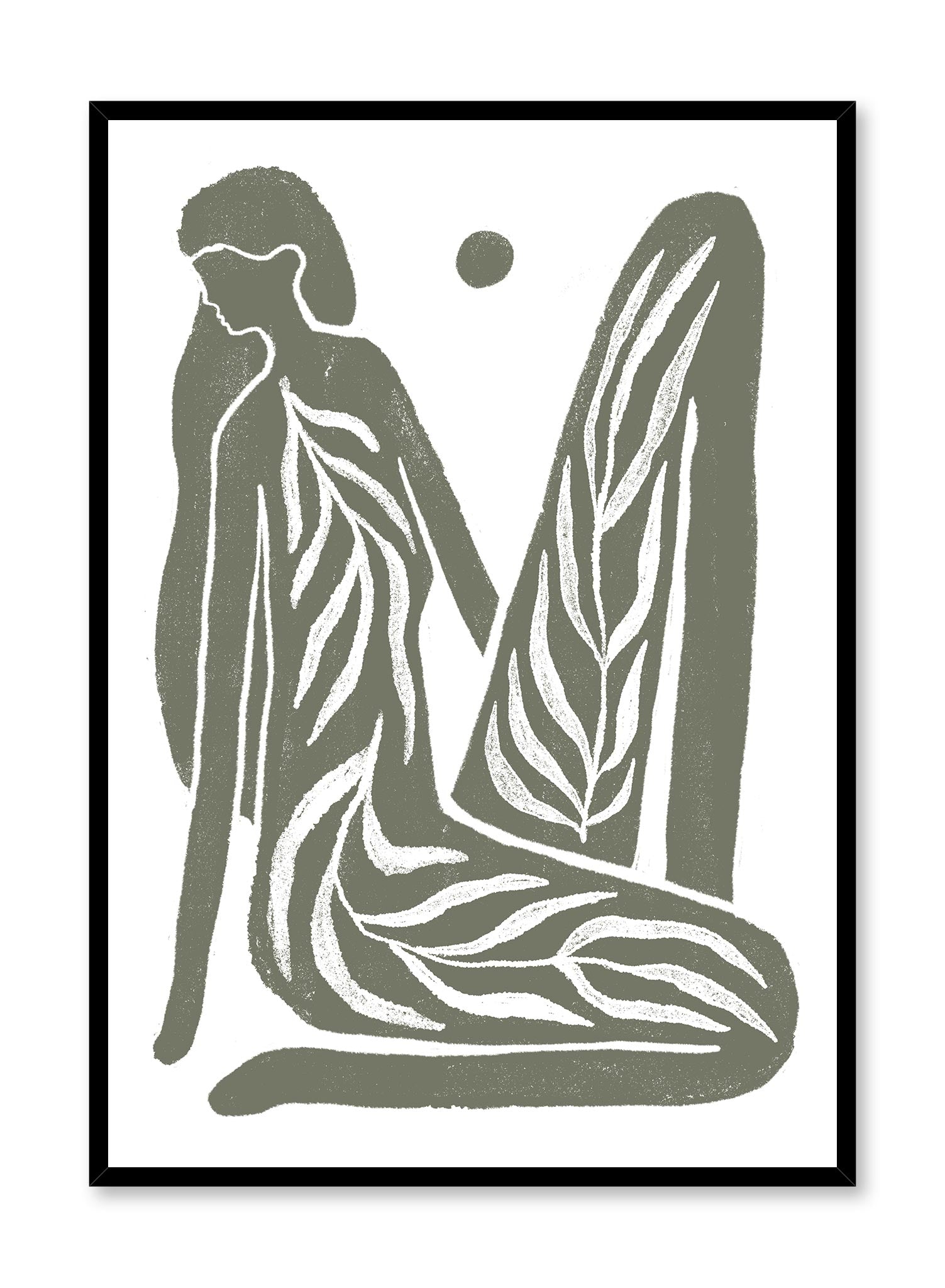 Sometimes, all you need is a good twist! If you love yoga and boho art, the ‘Seated Twist’ poster is sure to catch your eye. This graceful art print features a woman’s figure in a seated twist. Her body is a textured sage-green and decorated with beautiful beige leaves matching the beige background.